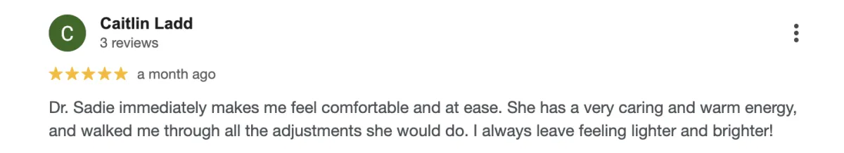 Dr. Sadie Hirschfield is passionate about empowering others through chiropractic care, with a mission to inspire self-love, healing, and appreciation for the body’s potential. Her background in childcare and the arts, combined with a deep love for humanity, led her to pursue a career focused on helping people live with purpose and vitality.