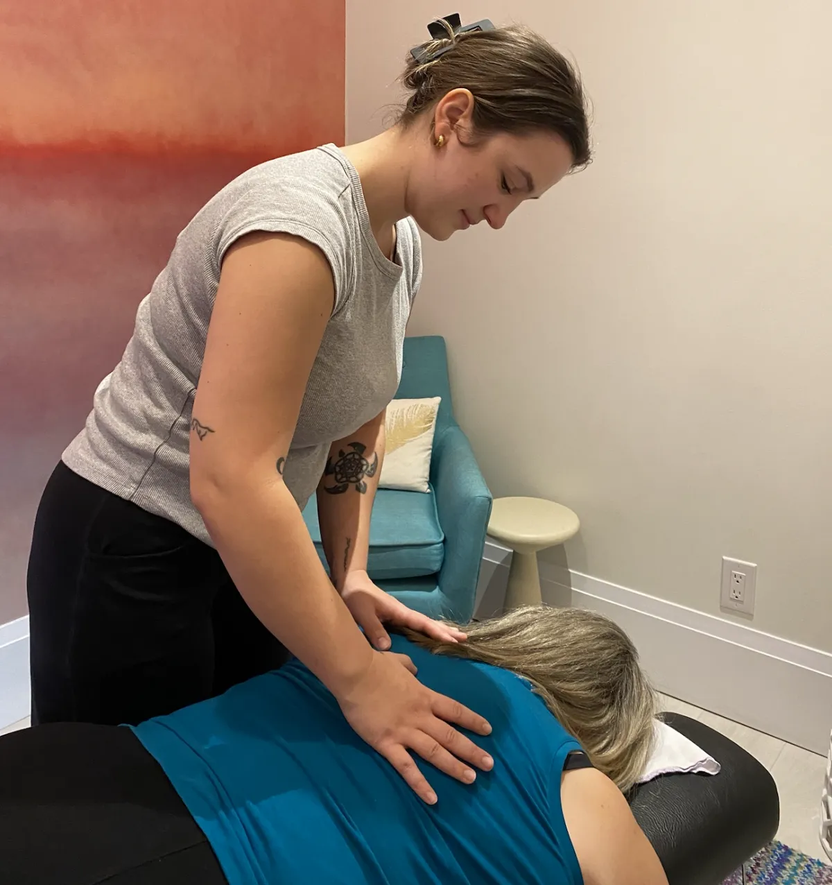 She holds a Bachelor of Science in Kinesiology from Dalhousie University and earned her Doctor of Chiropractic from the New Zealand College of Chiropractic, where she achieved academic excellence and certification in multiple techniques including SOT, Network Spinal Analysis, Thompson, and Upper Cervical Specific. Dr. Sadie practices primarily tonal chiropractic and is trained in pediatric, prenatal, and neurologically focused care, offering a compassionate and holistic approach to health.